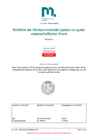 L1.2 100 – Prozessablauf Richtlinie der Montanuniversität Leoben zur guten wissenschaftlichen Praxis Revision 01 Zweck des Prozessablaufs Dieser Prozessablauf ist Teil des…